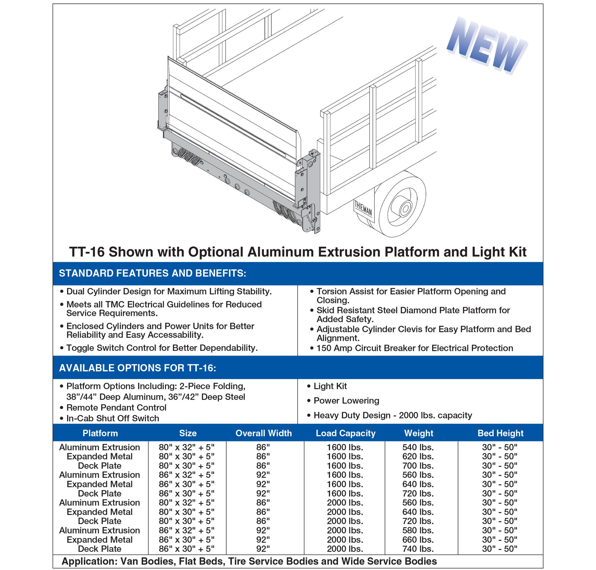 Thieman TT 20ET Aluminum Liftgate Specifications